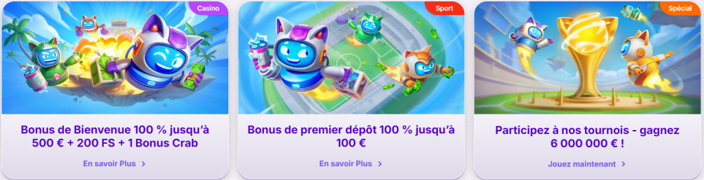 - Gamification via Bonus Crab : Un système de fidélité unique où chaque pari vous rapproche de nouvelles récompenses.